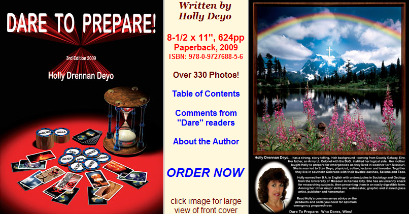 Holly Deyo has written what many believe to be the Ultimate Survival Manual for almost any emergency that might arise. If you want the facts at your finger tips for in-depth planning for nuclear war, food shortages, water shortages, and living “off the grid”, then this manual will provide much information to accomplish just that!
