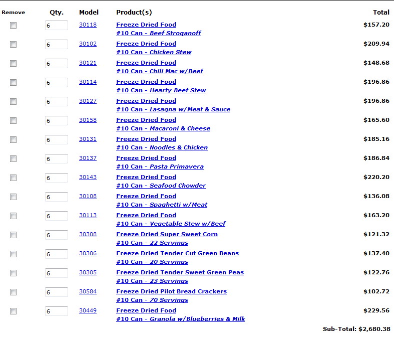 For my fellow “brothers and sisters in Christ”, I have negotiated a 25% discount off of already discounted prices from retail with Mountain House’s largest distributor. This offer is good until, 4/15/2010, on Mountain House #10 cans of Freeze Dried Food, and the shipping is FREE! If you ever intend to buy Mountain House Freeze Dried Foods, then this may well be the last opportunity you have to do so at today’s prices, and at a 25% discount. Check out the other distributors if you like, and if you can find a better price than 25% off of the following prices shown including free shipping – then buy it! Click on Freeze – Dried Foods on the left hand top of the screen which will take you to the Mountain House product line. One case contains six #10 cans, so after adding each item to your shopping cart, just increase the number of #10 cans of each item you desire to purchase until your order is complete. DO NOT ORDER ONLINE! You will not get the 25% discount unless you call Nitro-pak direct on their toll-free number, hit “O” for operator, and ask for Lisa Fellows. Tell Lisa that you are placing your order under the 25% discount available per Gary Blevins, and then just read her your order directly from the shopping cart appearing on your computer screen. Verify with Lisa that you total cost is exactly 25% less than that shown in the shopping cart before providing your credit card information. This will assure you that you are getting the 25% discount that would not otherwise be available via direct purchase on the web site. The following is provided only as an example as to how you might start preparing for a One Year Supply for one person. This would have to be supplemented by additional food, either more freeze-dried, dehydrated, canned food, peanut butter, etc. in order to provide the “good calories” needed to maintain good health for one person for one year. Empty calories placed in some “One Year Supply” Units are being sold as having the needed calories per year by adding fruits, sugar, and beverages in their “calorie count”. Things that I call “empty calories”! Do not be mislead by this type of advertising, but buy your own “supplemental foods” elsewhere! Costco sells freeze-dried pinto beans in buckets which would be a great addition to the Mountain House Freeze-Dried product line. Use your own imagination and budget in planning for your food supply, don’t rely on someone else to design the type and quality of food you have in storage, as you, not they, will be the one eating and paying for it!