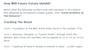 We have looked at the numbers 1110 and 1111 in the above chart with the numbers 1110, 1111, and 1212 being found in (Part I) of The Lucifer Project – Raising Antichrist. Let’s turn our attention to the number 1212 once again in the order of things. From Reagan’s birthday to his 101st Birthday Celebration in 2012 is exactly 1212 months! Will 2/6/12 (2012) (2 x 6 = 12; the year 12) (1212) be the date of the “coming out” of the Son of Perdition?