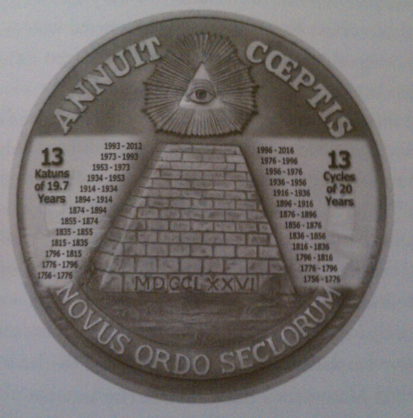 From 1776 to the lowering of the “Capstone” into place on the Illuminati pyramid, it appears that the the New Order of the Ages is nigh at hand. Consider the Great Seal of the Illuminati with the date of 1776 (1110 + 666) at the bottom which is a symbol of the coming New World Order under Antichrist/Lucifer.  The Sumerian Code appears once again to verify the “Occult (hidden nature) and satanic influence associated with these very events and objects as well as the expected date for all this to take place – December 21, 2012.